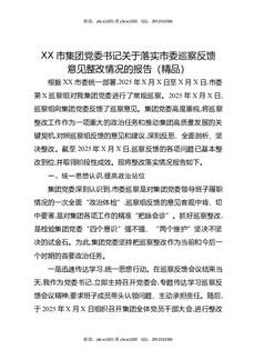 XX市集团党委书记关于落实市委巡察反馈意见整改情况的报告(精品).docx