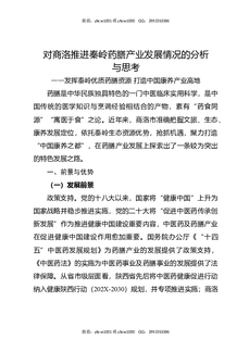对商洛推进秦岭药膳产业发展情况的分析与思考.docx