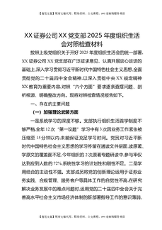 XX证券公司XX党支部2025年度组织生活会对照检查材料.docx