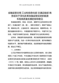 金融监管总局,工业和信息化部,交通运输部,商务部关于深化改革加强监管促进新能源车险高质量发展的指导意.docx