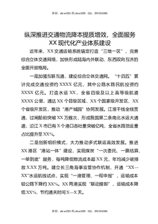 纵深推进交通物流降本提质增效,全面服务XX现代化产业体系建设.docx
