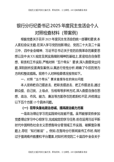 银行分行纪委书记2025年度民主生活会个人对照检查材料(带案例).docx