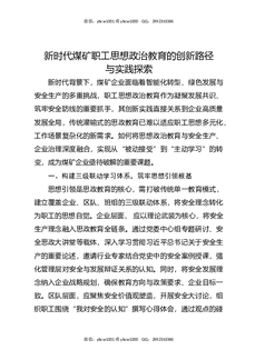 新时代煤矿职工思想政治教育的创新路径与实践探索.docx