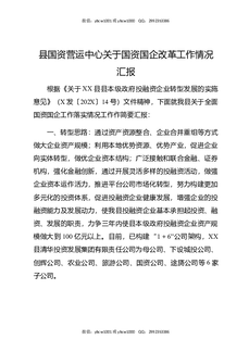 县国资营运中心关于国资国企改革工作情况汇报.docx