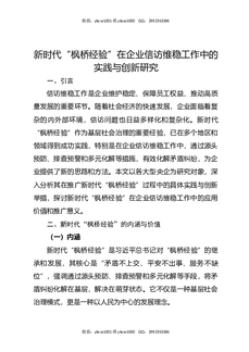 新时代“枫桥经验”在企业信访维稳工作中的实践与创新研究.docx