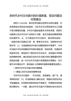新时代乡村文化振兴的价值意蕴,现实问题及对策建议.docx