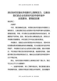 探讨如何在强化市场意识上聚焦发力,以推动我们的企业在新时代的市场环境中实现更快,更稳的发展.docx