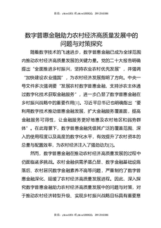 数字普惠金融助力农村经济高质量发展中的问题与对策探究.docx