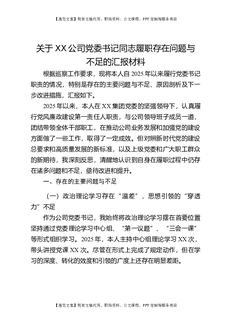关于XX公司党委书记同志履职存在问题与不足的汇报材料.docx