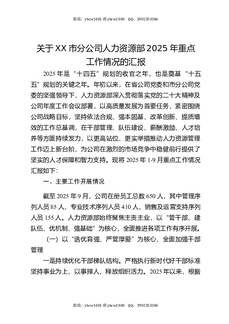 关于XX市分公司人力资源部2025年重点工作情况的汇报.docx