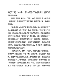 关于公司“创客”柔性团队工作开展计划汇报.docx
