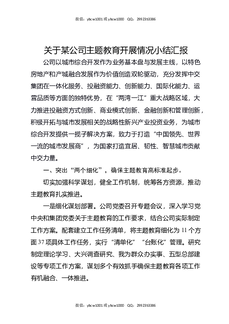 关于某公司主题教育开展情况小结汇报.docx