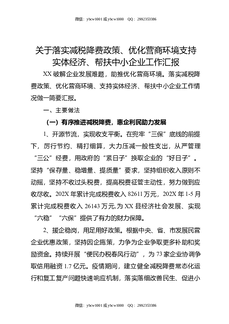 关于落实减税降费政策,优化营商环境支持实体经济,帮扶中小企业工作汇报.docx