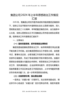 国企202X年上半年思想政治工作情况汇报(2461字).docx