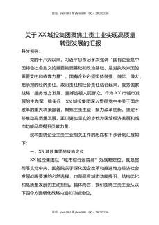 关于XX城投集团聚焦主责主业实现高质量转型发展的汇报.docx