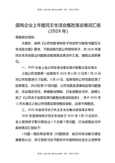 国有企业上年度民主生活会整改落实情况汇报(202X年).docx