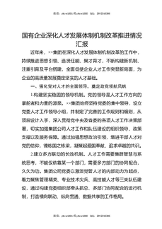国有企业深化人才发展体制机制改革推进情况汇报.docx