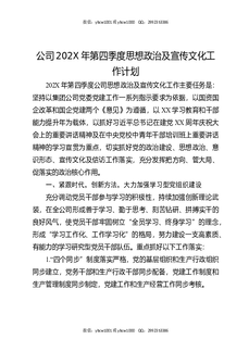 公司202X年第四季度思想政治及宣传文化工作计划.docx