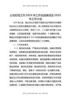 公司纪检工作202X年工作完成情况及202X年工作计划.docx