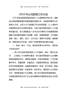 202X年公司团青工作计划参考模板.docx