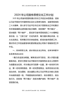 202X年公司宣传思想文化工作计划.docx