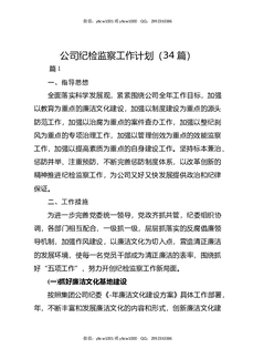 (34篇)公司纪检监察工作计划.docx