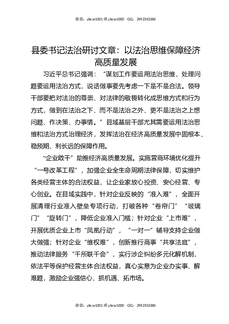 县委书记法治研讨文章:以法治思维保障经济高质量发展.docx