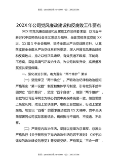 202X年公司党风廉政建设和反腐败工作要点1.docx