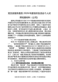 党支部宣传委员2026年度组织生活会个人对照检查材料(公司).docx