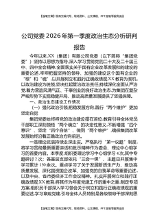 公司党委2026年第一季度政治生态分析研判报告.docx