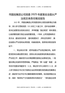 市国投集团公司党委2025年度落实全面从严治党主体责任情况报告.docx