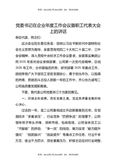 党委书记在企业年度工作会议暨职工代表大会上的讲话.docx