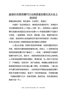副县长在烟花爆竹行业高质量发展交流大会上的讲话.docx