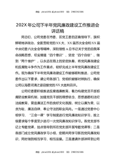 202X年公司下半年党风廉政建设工作推进会讲话稿.docx