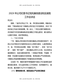 202X年公司纪委书记党风廉政建设和反腐败工作会讲话.docx