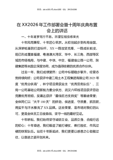 在XX2026年工作部署会暨十周年庆典布置会上的讲话.docx