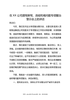 在XX公司酒驾醉驾,违规吃喝问题专项整治警示会上的讲话.docx