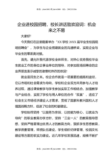 企业进校园招聘,校长讲话致欢迎词:机会来之不易.docx