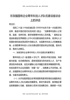在加强国有企业青年科技人才队伍建设座谈会上的讲话.docx