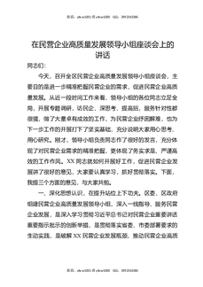 在民营企业高质量发展领导小组座谈会上的讲话.docx