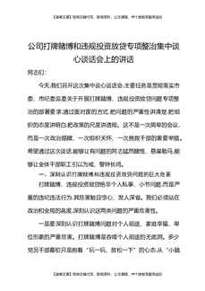 公司打牌赌博和违规投资放贷专项整治集中谈心谈话会上的讲话.docx
