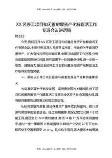XX区停工项目和闲置房屋资产化解盘活工作专班会议讲话稿.docx