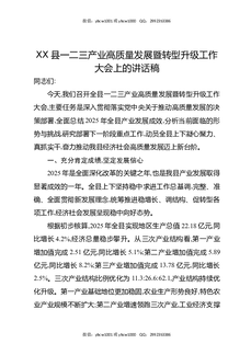 XX县一二三产业高质量发展暨转型升级工作大会上的讲话稿.docx