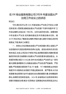 在XX物业服务有限公司2026年度全面从严治党工作会议上的讲话.docx