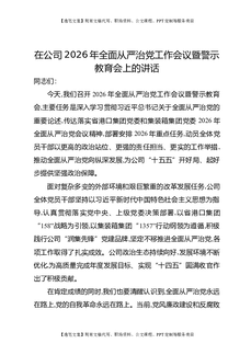 在公司2026年全面从严治党工作会议暨警示教育会上的讲话.docx