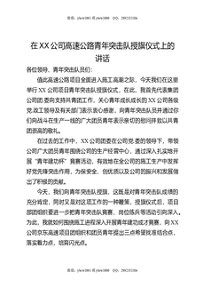 在XX公司高速公路青年突击队授旗仪式上的讲话.docx