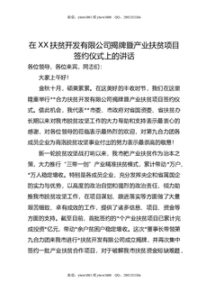 在XX扶贫开发有限公司揭牌暨产业扶贫项目签约仪式上的讲话.docx