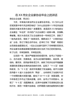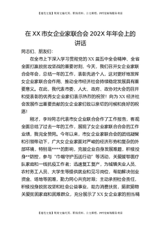 在XX市女企业家联合会202X年年会上的讲话.doc