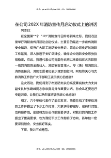 在公司202X年消防宣传月启动仪式上的讲话.docx
