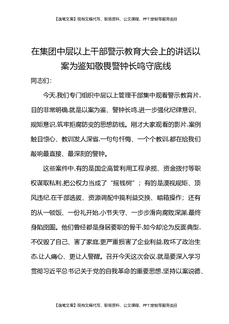 在集团中层以上干部警示教育大会上的讲话以案为鉴知敬畏警钟长鸣守底线.docx